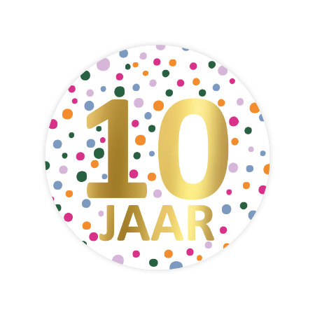 Stickers 10 jaar confetti 5 stuks