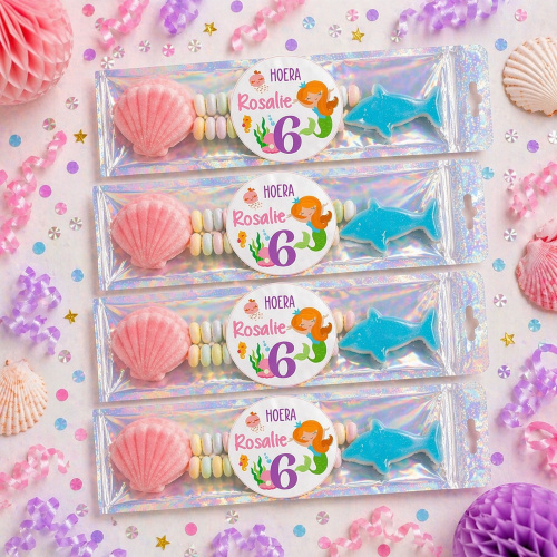 Bestel nu jouw verjaardagstickers met naam in het Zeemeerminnen thema en verras je kind en haar vriendjes met een originele en feestelijke traktatie. Jouw bestelling wordt altijd met zorg en liefde gemaakt, verpakt en verzonden.