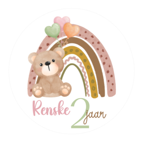 Traktatiestickers | Beer Regenboog | Met naam∙ Per vel van 20 stuks