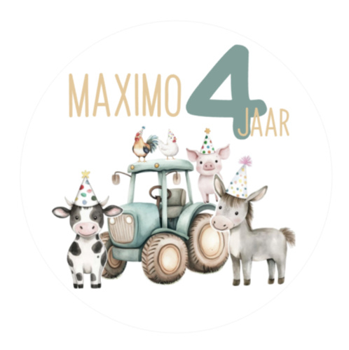 Traktatiestickers | Op de boerderij | Met naam∙ Per vel van 20 stuks