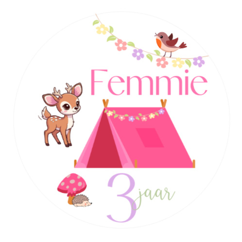 Traktatiestickers | Kamperen | Met naam∙ Per vel van 20 stuks
